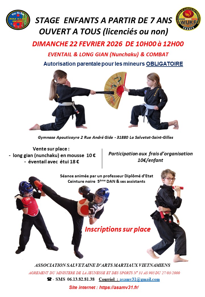 Je recommande ce club pour les enfants de 4-6 et +. En effet, le Viet Vo Dao est un excellent moyen pour développer la motricité des enfants. Ils apprennent très tôt à appréhender les contacts et chocs physiques. La pratique est faite sous forme ludique et on y apprend des principes tels que le respect, la loyauté, la générosité et le partage. Merci pour nos enfants qui vous adorent.